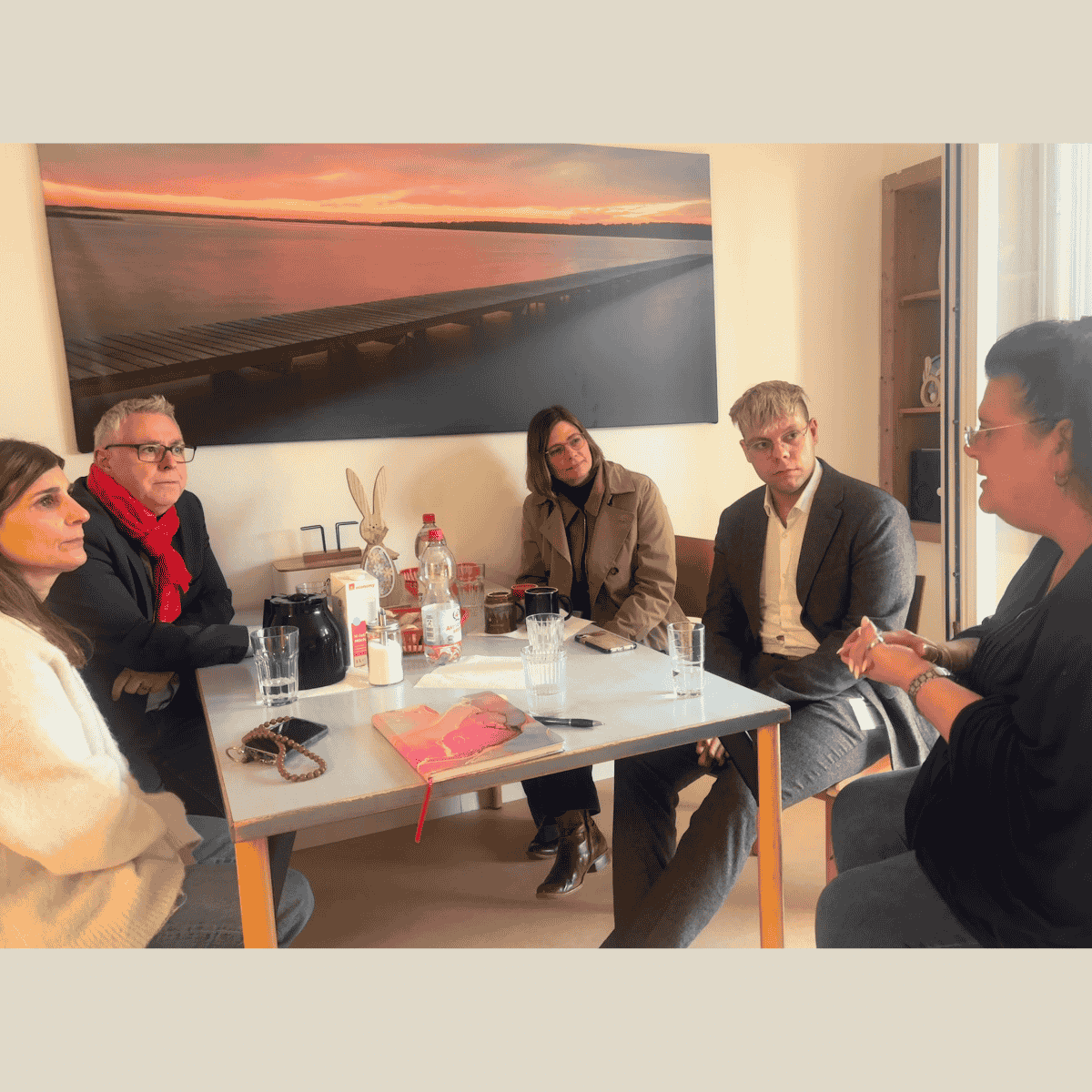 Weiter ging es ins Katharina-Zell-Haus, wo die Bewohnerschaft stolz ihre Zimmer zeigten und von Ihrem Zuhause in der Friedrichstraße berichteten. Im Anschluss boten Kaffee und kleine Snacks Gelegenheit für einen persönlichen und sehr offenen Austausch in entspannter Atmosphäre. Es gab viel zu besprechen: aktuelle Herausforderungen in der sozialen Arbeit, Perspektiven für die Zukunft und die Frage, wie soziale Unterstützung verlässlich gestaltet werden kann. Themen wie die angespannte Wohnraumsituation in der Eingliederungshilfe standen ebenso auf der Agenda wie die strategischen Schwerpunkte der Stadt.