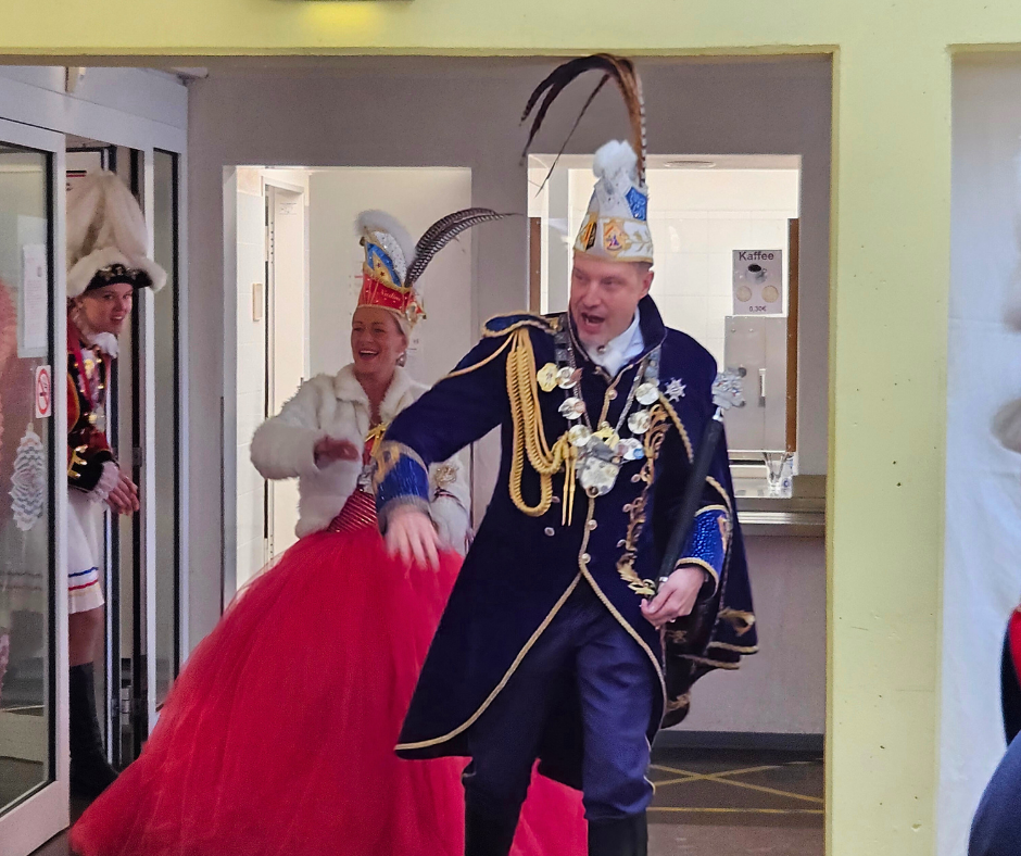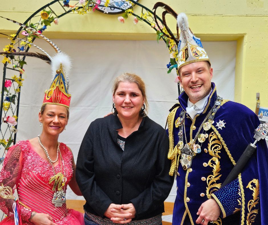 Mit dreifach donnerndem AHOI wurde das Stadtprinzenpaar Nadine II. von der Grokageli und Fabian I. vom LebensOrt erstmals in der Beruflichen Bildung begrüßt. Denn das Motto von Fabian I. – „Unitas in varietate et inclusione“ (Zusammenhalt in Vielfalt und Inklusion) – könnte nicht besser zur Gemeindediakonie passen.