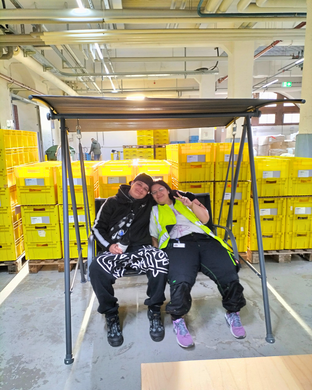Mit Platz für bis zu zwei Personen (maximal 200 kg) ist die Schaukel ab sofort der ideale Ort für kleine Pausen, gute Gespräche oder einfach ein paar Minuten entspanntes Hin- und Herschwingen im Arbeitsalltag.