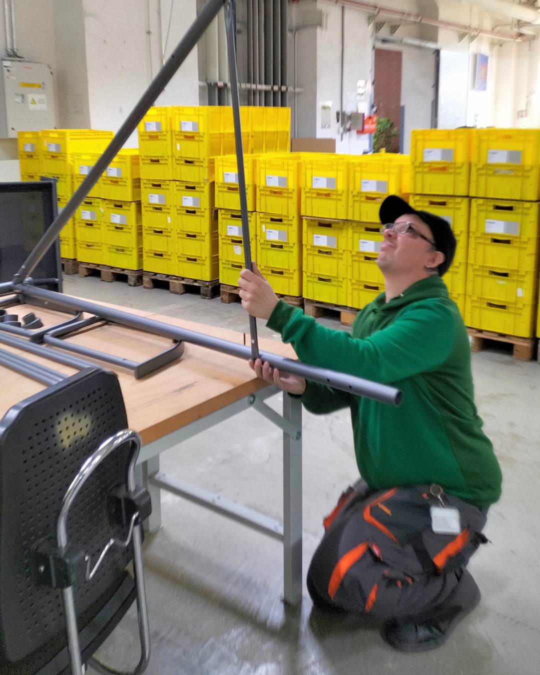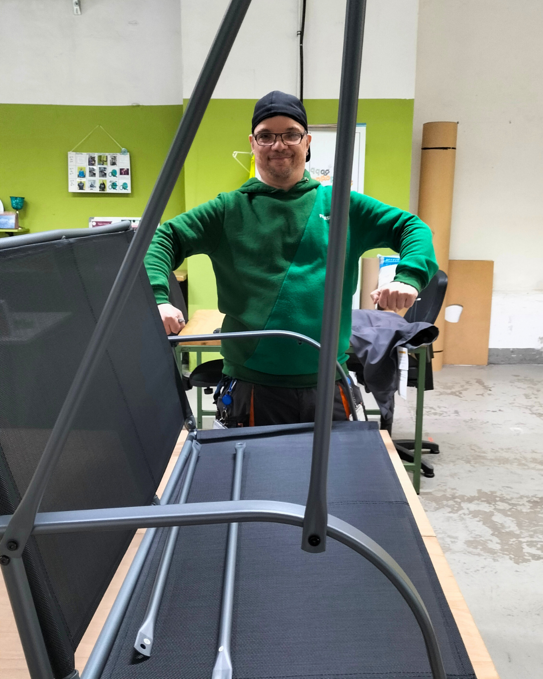 Große Freude im Industriepark Weinheim: Die neue „Transfer“-Schaukel ist angekommen! Dank Dominik Kettner, der den Aufbau der Hollywoodschaukel souverän im Alleingang übernommen hat, stand das gute Stück in kürzester Zeit sicher an seinem Platz.