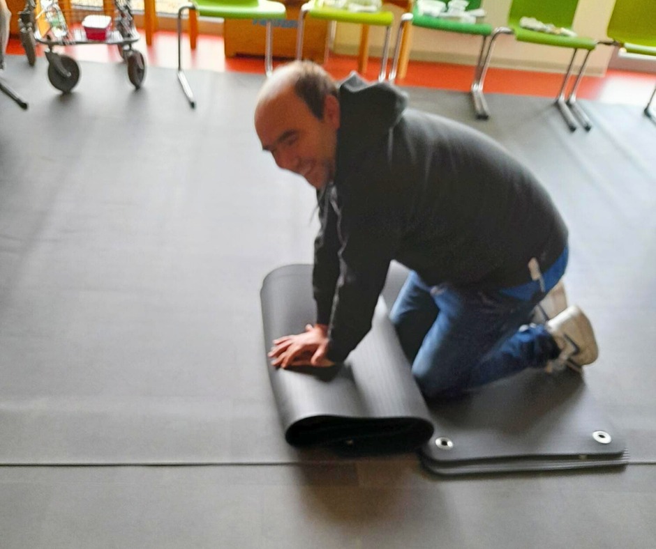 Trotz des ernsten Themas gab es immer wieder Momente zum Lachen und Scherzen. Natürlich durfte während der Fortbildung die Frage nach der Herzdruckmassage nicht fehlen. Eine Trainingspuppe war diesmal zwar nicht dabei, aber zwei zusammengerollte Sportmatten erfüllten ihren Zweck erstaunlich gut.