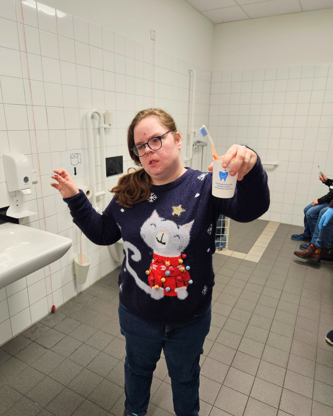 Natürlich blieb es nicht bei der Theorie. Ganz praktisch konnten die Beschäftigten selbst üben, wie richtiges Zähneputzen funktioniert. Denn wann hat man schon einmal eine Fachfrau an der Seite, die individuell Tipps gibt und Fragen beantwortet?