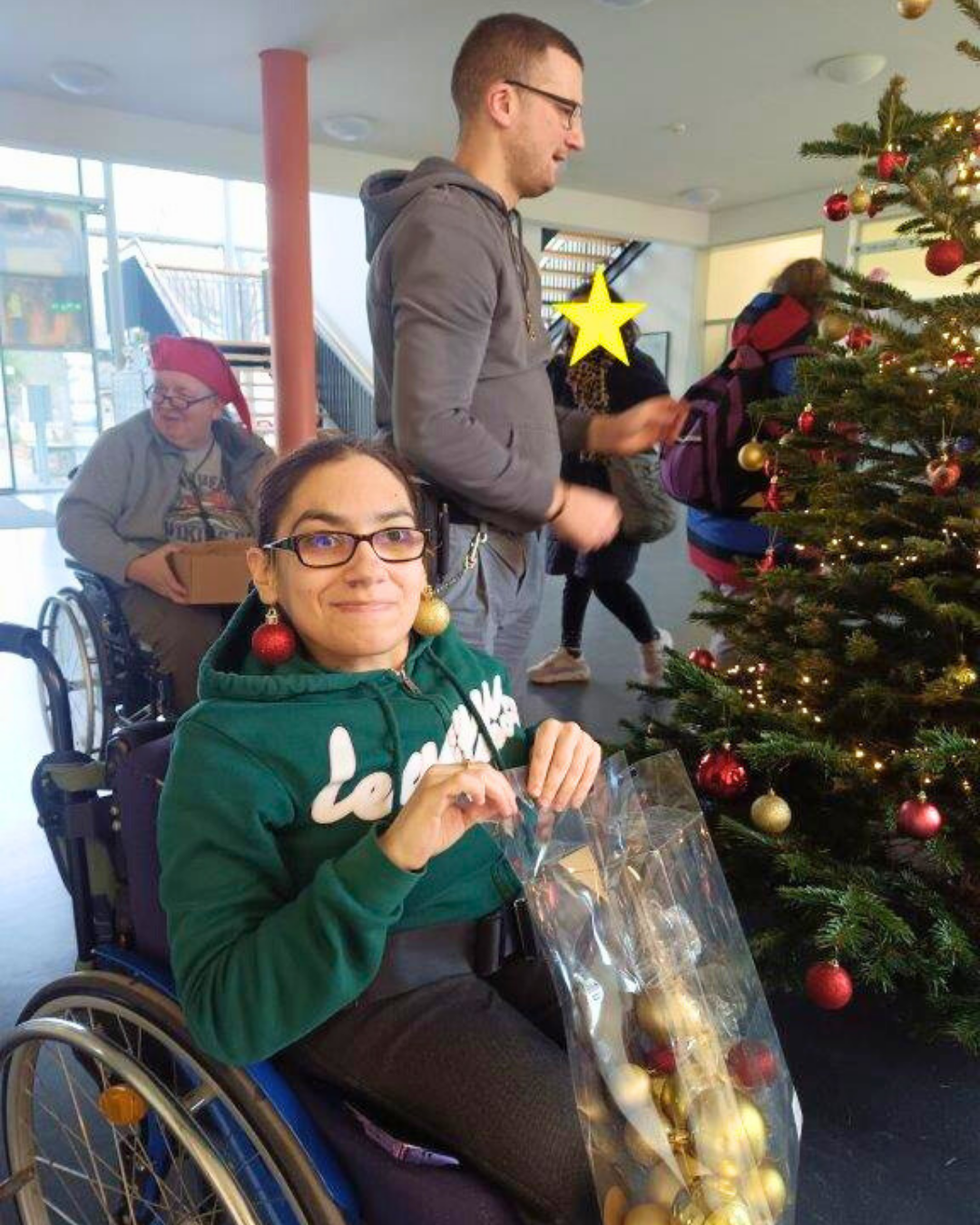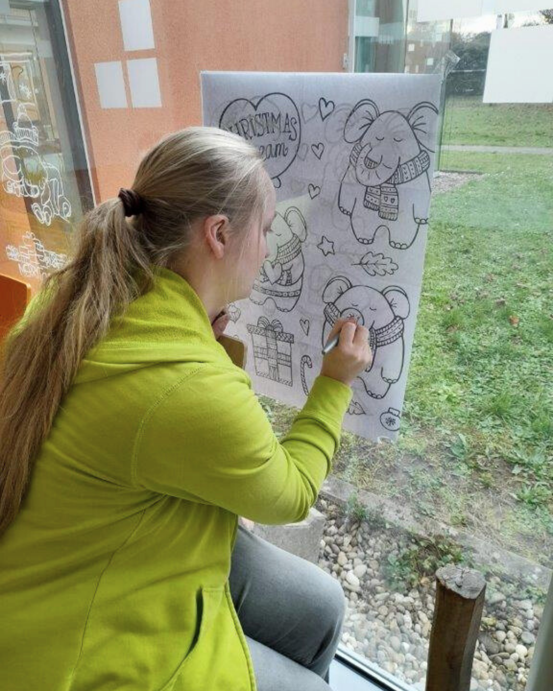 In der Werkstatt Neckarau wurde diesmal nicht nur der Weihnachtsbaum geschmückt... vielleicht wird dieser neue Ohrringschmuck der nächste Modehit? Den Beschäftigten steht der Glitzer und Glanz auf jeden Fall hervorragen! Daneben wurden die Fenster in Handarbeit mit weihnachtlchen Motiven verziert. So wird das Warten auf Weihnachten doch wirklich ein Kinderspiel!